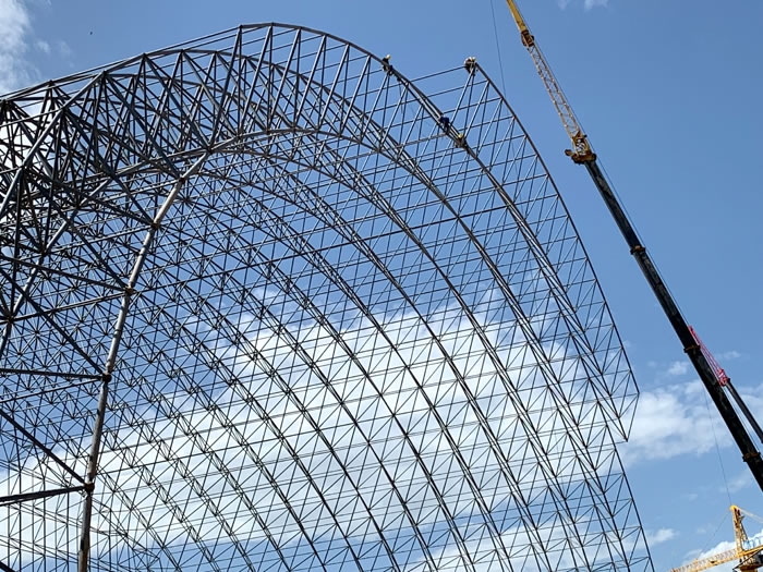 (2)网架加工前应对现场尺寸进行复测,确认无误后方可进行加工、安装;网架制作、运输、安装应遵守《空间网格结构技术规程》JGJ7-2010、《钢网架防城港螺栓球节点》JG/T 10-2009、《钢网架防城港螺栓球节点用高强度螺栓》 GB/T 16939-2016、《防城港钢结构防城港工程防城港施工规范》 GB50755-2012、《防城港钢结构防城港工程施工质量验收标准》 GB50205-2020。